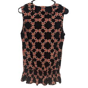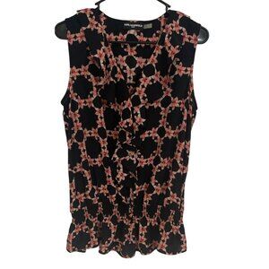 Karl Lagerfeld Paris Sleeveless Floral Ruffle Neck Smocked Waist Top S Designer