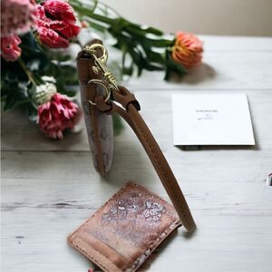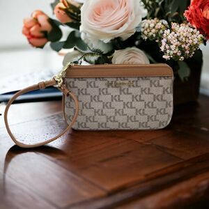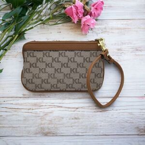 Karl Lagerfeld Logo brown wristlet new with tags in gift box.