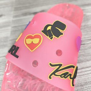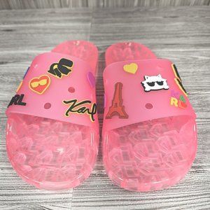 Karl Lagerfeld Paris Thea Fuchsia Pink Translucent Pool Slides-Women's Size8 NEW