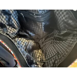 Features: Spacious interior, zippered pockets, Karl Lagerfeld logo lining, top zip closure, dual carry handles