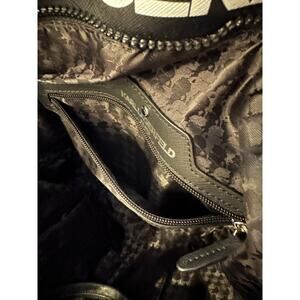 Crafted from what appears to be a durable polyester exterior and a woven fabric lining, this bag is as practical as it is fashionable. The spacious interior is perfect for carrying all your essentials, and the zippered pockets provide secure storage for valuables. The Karl Lagerfeld logo lining adds a touch of luxury.