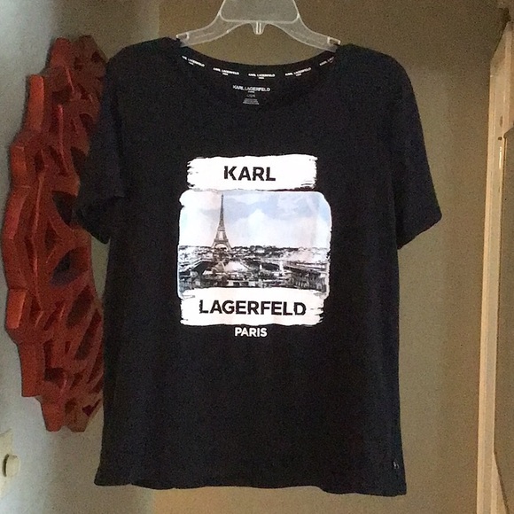 Black Karl Lagerfeld Paris destination T-shirt with Paris, Eiffel Tower graphic and s