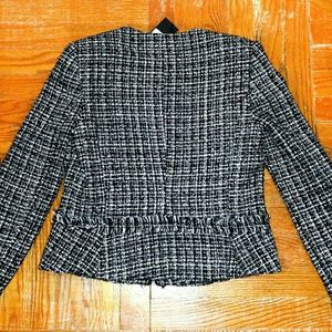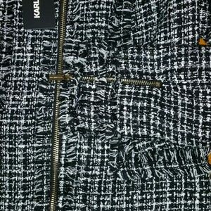 Karl Lagerfeld Paris Black/White Tweed Channel style blazer with Front Packets
