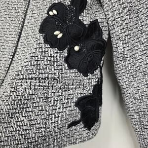 Karl Lagerfeld Paris Tweed Jacket with Contrast Appliques & Pearl Drops, Size 8