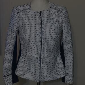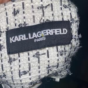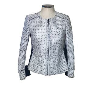 Karl Lagerfeld Paris White Fringe-Trimmed Tweed Zip Up Jacket Size Small
