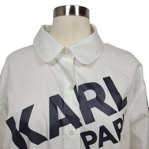 Karl Lagerfeld Paris White Oversized Logo Button Down Shirt Top Size XL