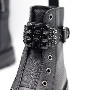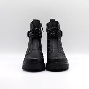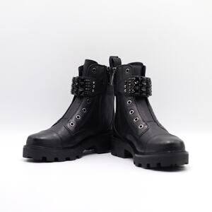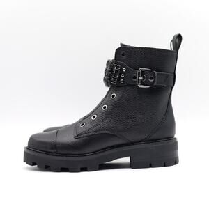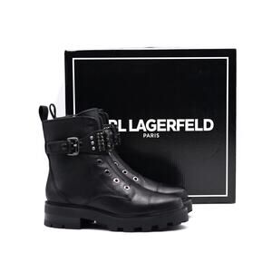 Karl Lagerfeld Paris Women Black Leather Maeva Buckled Combat Booties Size 7M