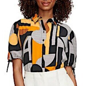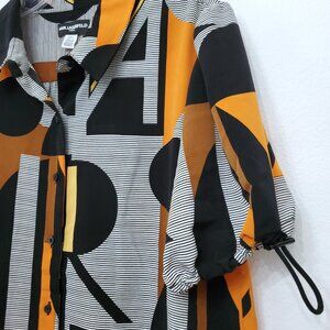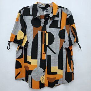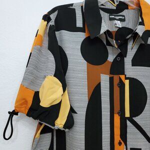 Karl Lagerfeld Paris Women's Abstract Printed Bungee-Sleeve Blouse Size XL