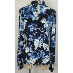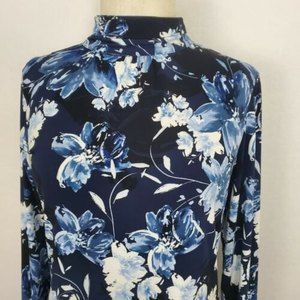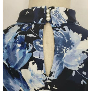 Karl Lagerfeld Paris Womens Floral Mock Turtleneck Blouse Faux Pearl Button S