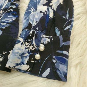 Beautiful large floral long sleeve top with pearl buttons featured at the back of the neck and sleeve cuff.