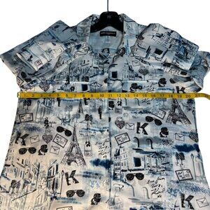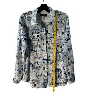 Karl Lagerfeld Paris Womens Graphic Print Long Sleeve Button-Down Shirt M 100% P