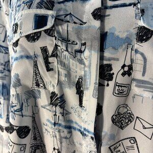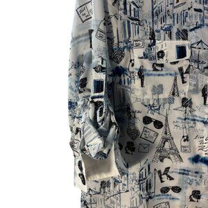 This Karl Lagerfeld Paris long sleeve shirt incorporates an artistic and whimsical graphic print, showcasing iconic Parisian elements. The lightweight polyester fabric ensures comfort and durability, while the button-down design adds a classic touch. This versatile shirt merges style and function, making it a standout piece in any wardrobe.