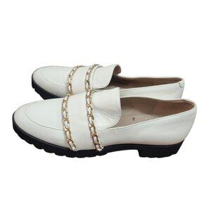 Karl Lagerfeld Paris Women’s Loafers 8 / 38.5 B Cream Leather Gold Chain Trim Chunky Sole Designer Shoes