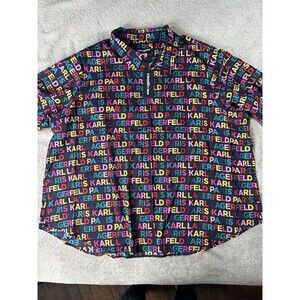 Karl Lagerfeld Paris Women’s Logo Multicolor Print Shirt Blouse Size3X