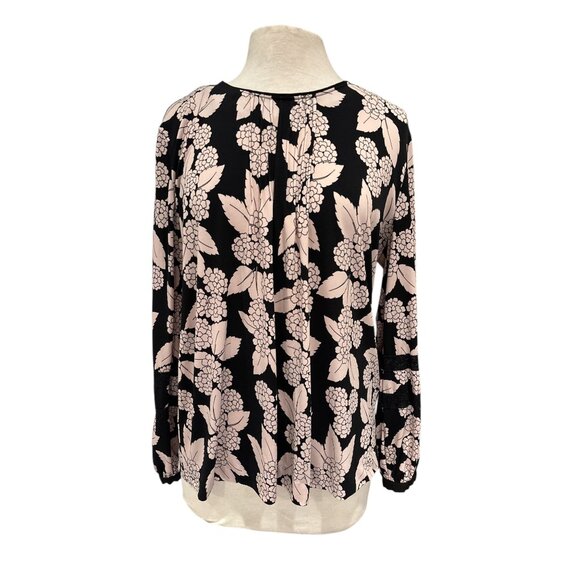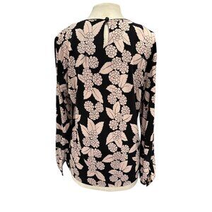 Karl Lagerfeld Paris Womens Long Sleeve Floral Blouse Black & Pink Size L