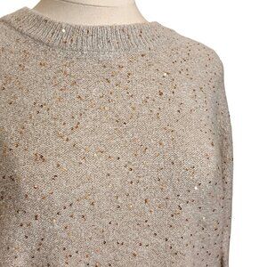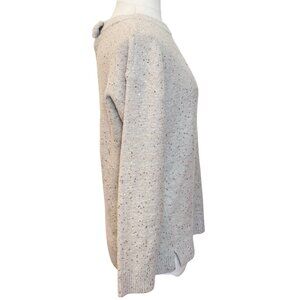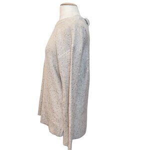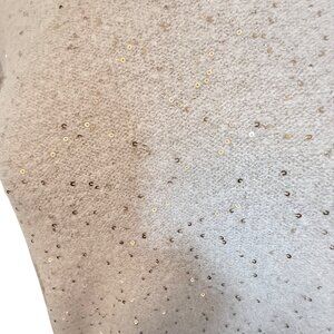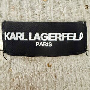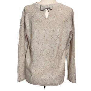 Karl Lagerfeld Paris Womens Sweater M Cream Gold Sequins Keyhole Bow Clean Girl