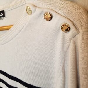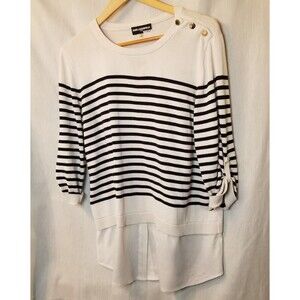 Karl Lagerfeld Paris Women's Sweater Top Black White Striped Size L Mixed Media