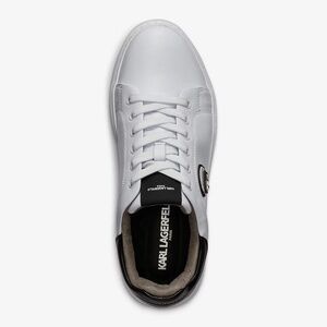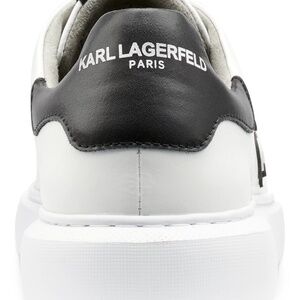 Karl's head logo patch on exterior quarter; logos on top and bottom of tongue, and on heel