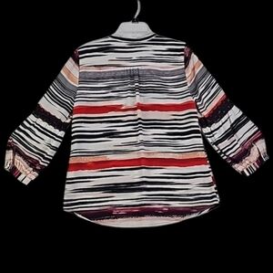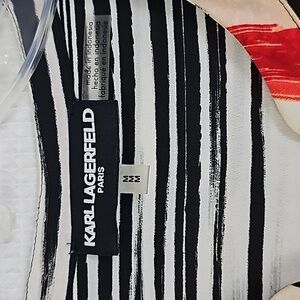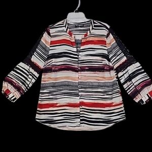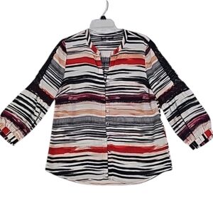 Karl Lagerfeld Paris~Woman Sz. M~Multicolor Elegant Top Buttn 3/4 Balloon Sleeve
