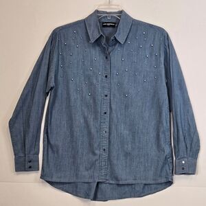 Karl Lagerfeld Pearl Embellished Women's Denim Button Down Shirt sz L