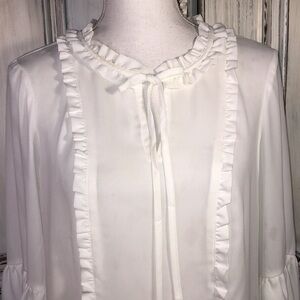 Karl Lagerfeld Popover V Neck Ruffle Mid Sleeve Cream Tie Front Blouse Size S