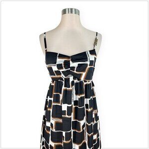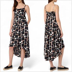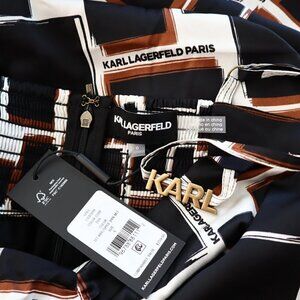 Karl Lagerfeld Printed Drop Hem Sweetheart Midi Logo Charm Dress NWT New 6
