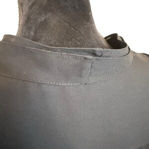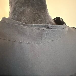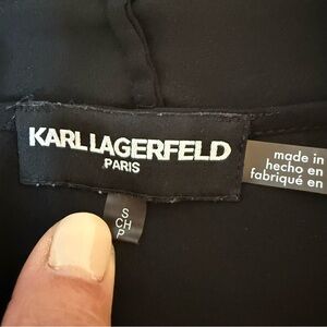 This elegant black blouse by Karl Lagerfeld features a sleeveless design and a relaxed fit, perfect for a professional setting. The notched collar adds a touch of sophistication, while the buttoned front enhances its versatile style. Crafted from lightweight fabric, it drapes beautifully for a polished look.