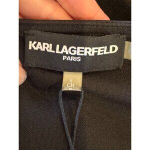 Karl Lagerfeld Shirt Women Small Black Lace Panel Long Sleeve Blouse Whimsigoth Gothic NWT