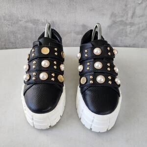 Karl Lagerfeld Shoes Womens Size 9 Black Leather Catori Embellished Slip On
