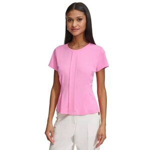 Karl Lagerfeld Short Sleeve Pleat Front Knit Top Pink Size M MSRP $69