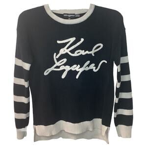 Karl Lagerfeld Womens Signature Logo Striped Pullover Long Sleeve Sweater Sz Small. In good condition.