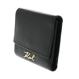 Karl Lagerfeld Signature Trifold Compact Wallet Leather Black GHW 03KP055