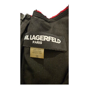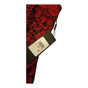 Karl Lagerfeld Size 10 Red and Black Lace Floral Sleeveless Zip Closure Dress