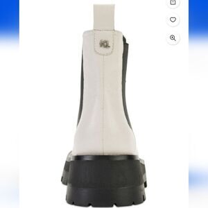 Karl Lagerfeld Size 9 Mayde Cream Leather And Rhinestone Trimmed Boots, NEW