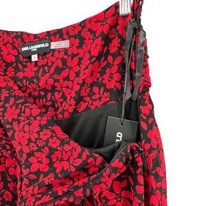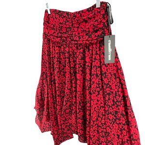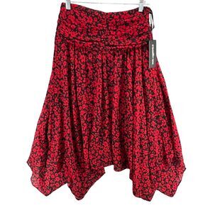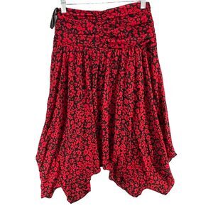 Karl Lagerfeld Skirt Womens 2 Black Red Floral Ruched Handkerchief Fairy Grunge