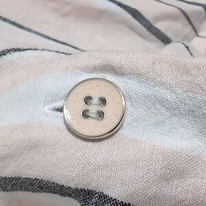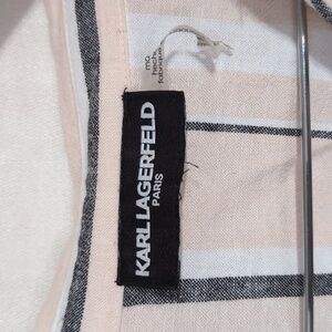 Karl Lagerfeld Spread Collar Peach Grey Striped Linen Blend Button Up Medium