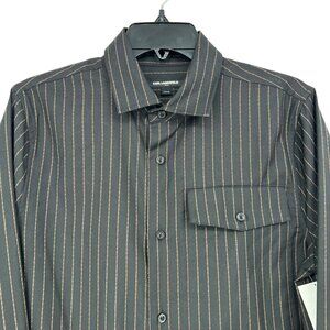Karl Lagerfeld Striped Wool Blend Button-Up Shirt Black Size Small NWOT