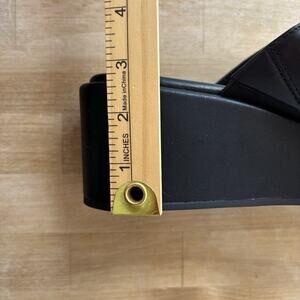 Karl Lagerfeld Studded Charm Platform Gold Black Leather Wedge Sandals 9M NEW
