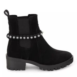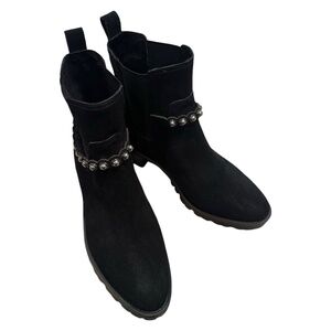 Karl Lagerfeld Suede Ankle Boots with Studded Strap - NWOT