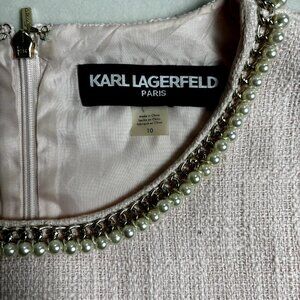 Karl Lagerfeld Sz 10 Pink Tweed Knee-length Sleeveless Dress