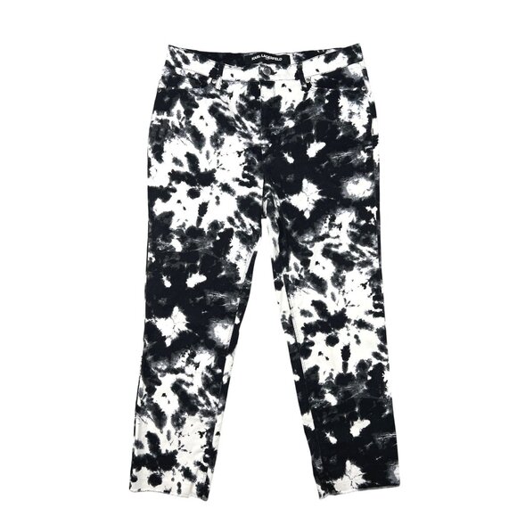 Karl Lagerfeld Tie-Dye Black & White Skinny Jeans Womens Size 12 Frayed Hem
