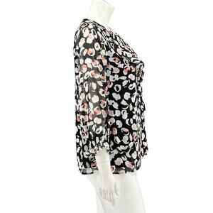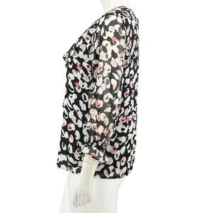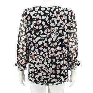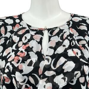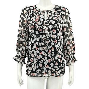Karl Lagerfeld Top Womens Small Black White Red Ruffle Lightweight Sheer Pullover 3/4 Flare Sleeves Keyhole Work Career Business Office