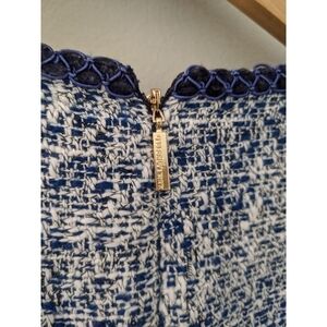 Excellent pre-owned condition. Karl Lagerfeld Tweed white and blue dress with two front pockets. Hidden back zipper. Lined. Size 10.