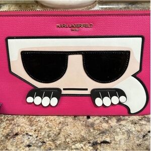 Karl Lagerfeld Vibrant Pink Maybelle Wristlet Pouch Wallet Purse