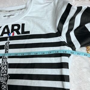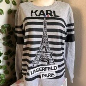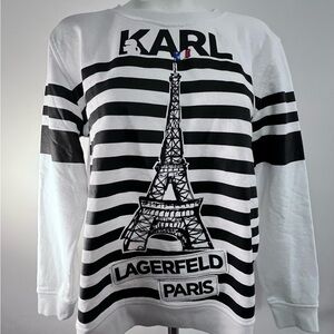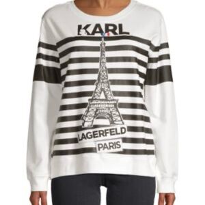 Elegant white knitwear by Karl Lagerfeld. Features brand label and logo.