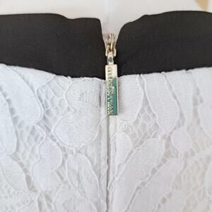 Karl Lagerfeld White Lace Sleeveless Sheath Dress Size 6 Black Contrast Trim Bow