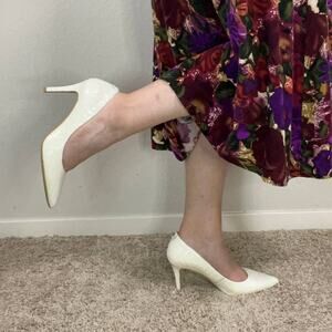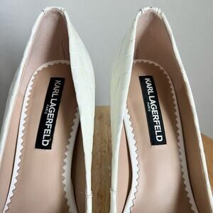 Karl Lagerfeld White and Cream Snake Print Pumps Size 8