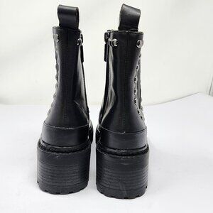 Karl Lagerfeld Women’s 5.5M Breck Black Studded Leather Moto Booties Chunky Heel