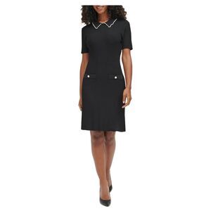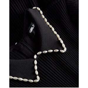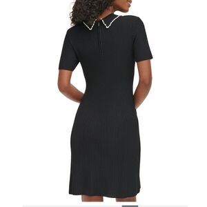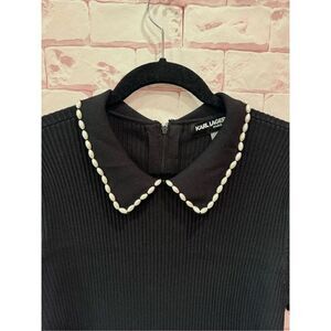 Karl Lagerfeld Women's Beaded-Collar Ribbed Sweater Dress size large black