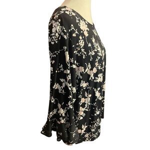 Karl Lagerfeld Women’s Black Multi-Color Floral Blouse With Trumpet Sleeves Size